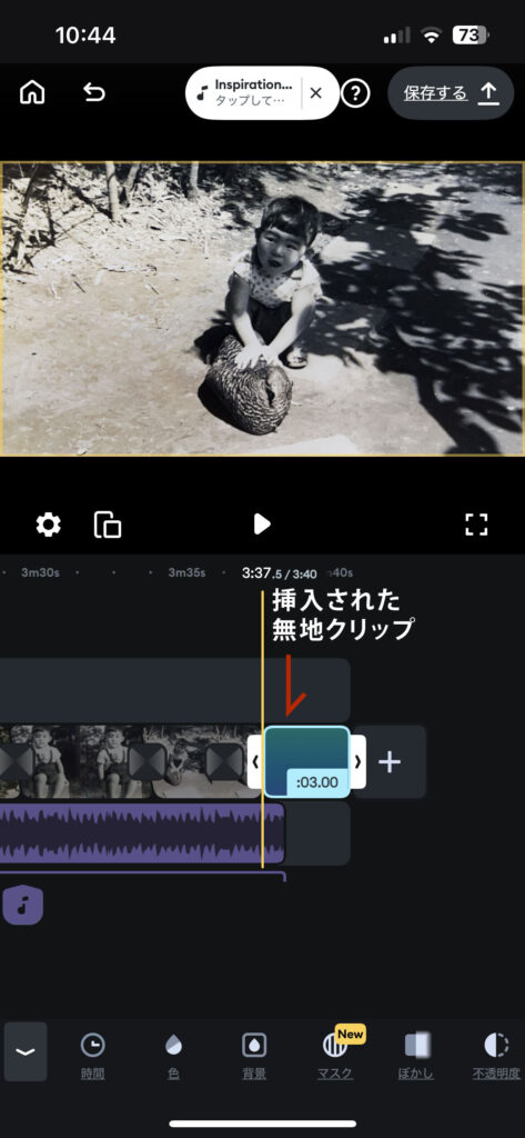 Spliceは「空白」クリップを簡単に挿入できるため、エンディング演出もスムーズに整えられます。