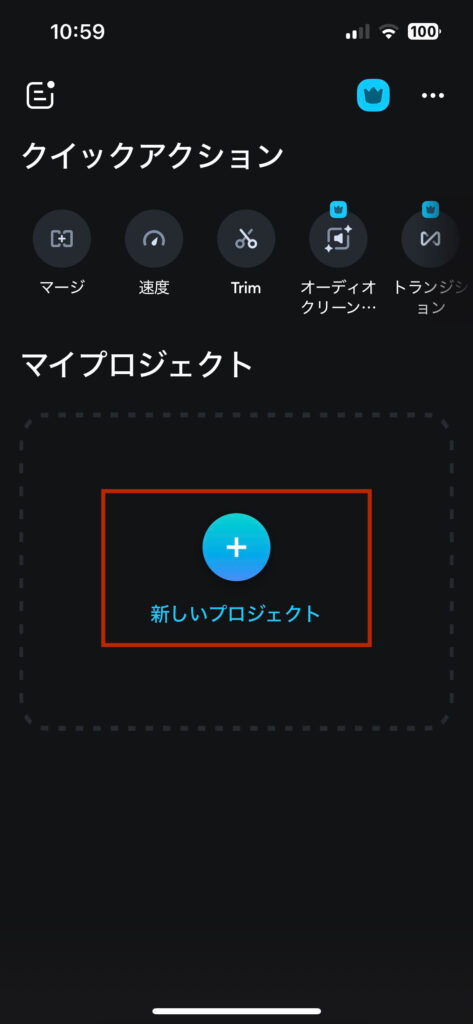 アプリを起動したら、画面下の「新しいプロジェクト」ボタンをタップします。